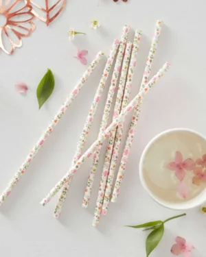 Blomstertrykk papir sugerør – Hvit – 19,5cm