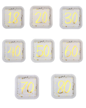 “Happy Birthday” & Gullstjerner – Hvit – 22,5cm