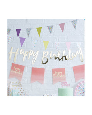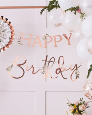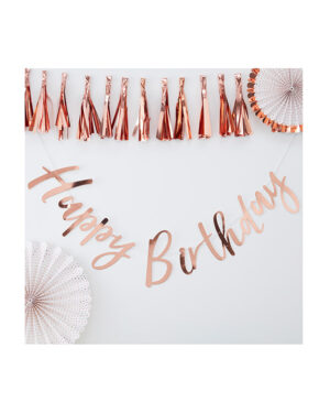 “Happy Birthday” med frynser – Rosegull – 3m