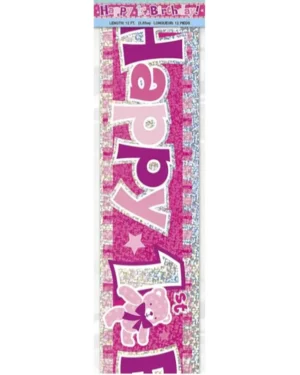 “Happy 1st birthday” – Glitrende effekt – Rosa – 3m