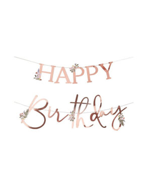 “Happy Birthday” med frynser – Rosegull – 3m