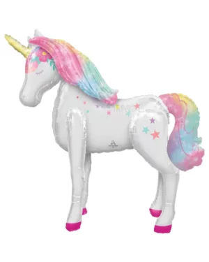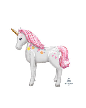 Gående Ballong – Enhjørning – Hvit & Rosa – 106x116cm