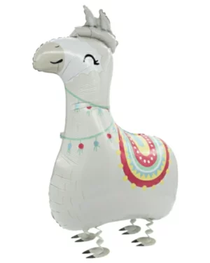Llama med solbriller & ballonger – Fargerik – 45cm