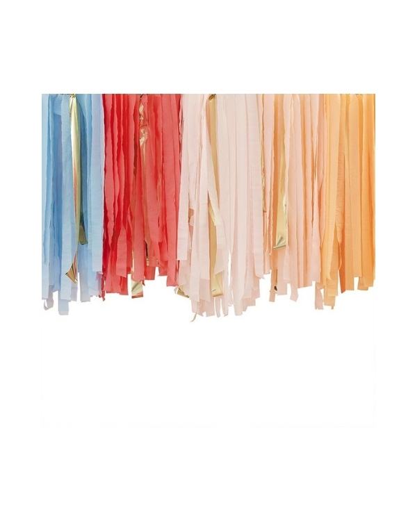 Denne takdekorasjonen er den ultimate måten å heve festens utseende på! Hvert Streamer -bakteppe inneholder 200 meter pastell- og gullstrømper med en maskebånd, slik at det er enkelt å montere når suspen henger. Det ultimate festbakgrunnet for å feire absolutt alt! Denne ‘Happy Everything’ Rainbow Streamer Backdrop er den perfekte dekorasjonen for å legge til en fargeklatt til festen din.