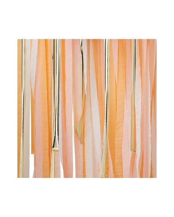 Legg et snev av glans til festbakgrunnen din! Hver pakke inneholder 150 meter med streamers i en rekke fersken- og gullfarger. Disse enkle gull- og ferskenstreamerne er en flott måte å lage et enkelt festbakgrunn – dette kan enkelt henges på vegger eller møbler for å skape det perfekte utseendet for festen din! Bruk dette Streamer -bakteppet i kombinasjon med våre fotobooth -rekvisitter for det ultimate fotobildet!