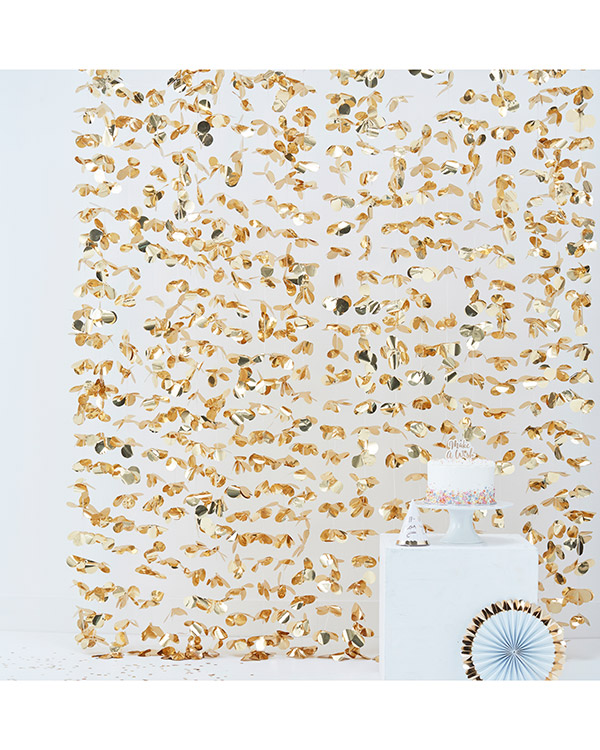 1 stk. Blomsterbakvegg i gull som passer perfekt til å skape et bakteppe til eksempelvis en fotoboks eller som dekor til en fest. Backdrop måles totalt 2m B x 1,8 m H, hver pakke inneholder 1 x bakteppe som måler 2 m (B) x 1,8 m (H).