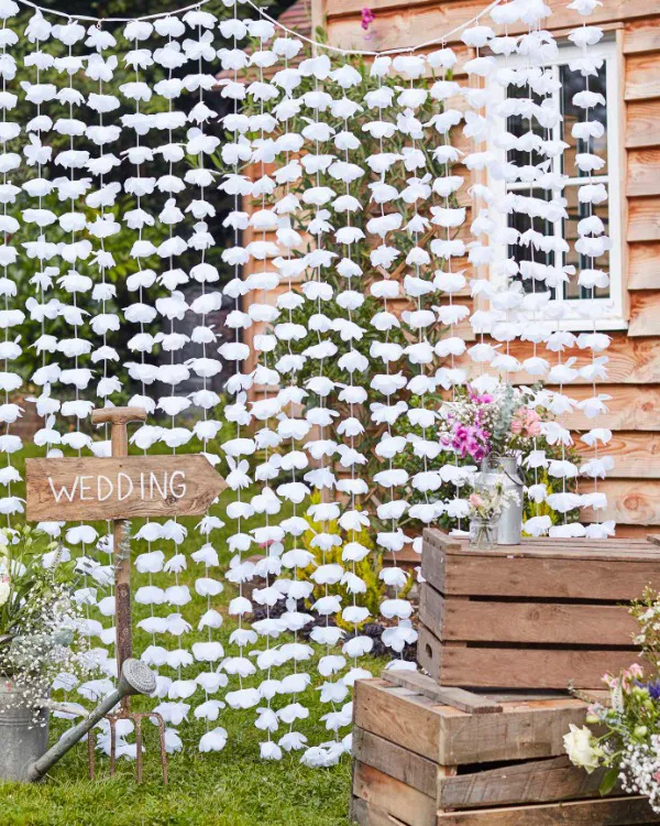 Backdrop / Tassels: Hvite blomster – Hvit – 2m B x 1,8m H
