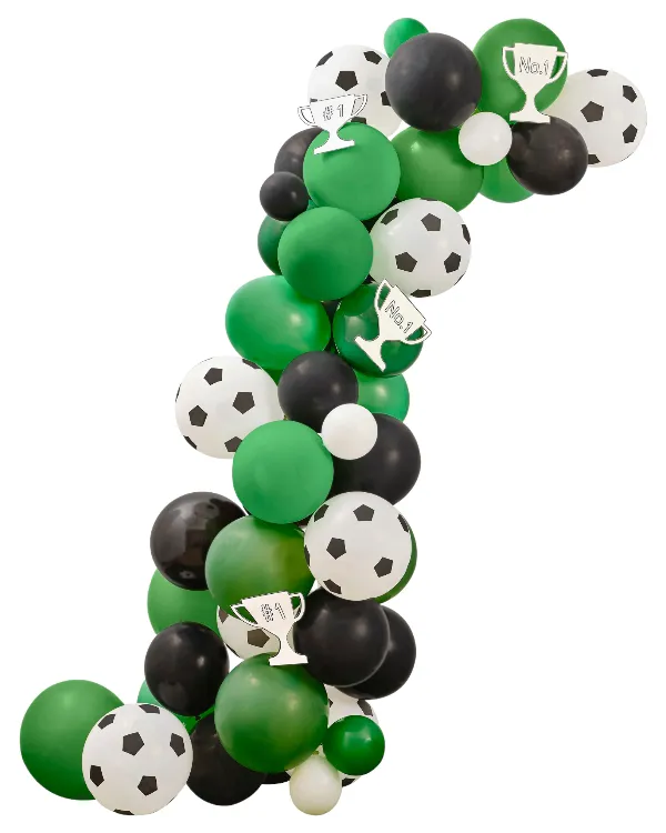 Vil du imponere gjestene på fotballfesten din? Da er dette ballongbuet DIY-settet det perfekte valget! Med dette settet kan du enkelt lage en imponerende ballongbue i fotballtrofe-design. Den grønne fargen gir en autentisk følelse av fotballbanen, og vil virkelig sette stemningen for festen.