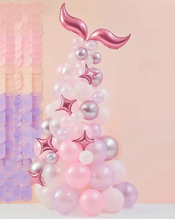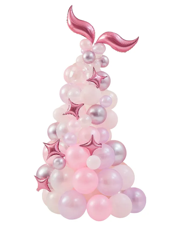 Ballongbuen er konstruert med en blanding av irisende stjerner og havfruemotiver, og fanger lyset på en uforglemmelig måte. Hver ballong er nøye utformet for å reflektere lys og farger på enestående vis, noe som skaper en fantastisk visuell effekt. Enten det er en bursdag, et bryllup eller et annet jubileum, vil denne ballongbuen virkelig imponere gjestene.