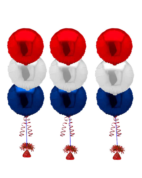 Ballongbukett: 17. mai Rødt, hvit & blått Folie Trio x 3