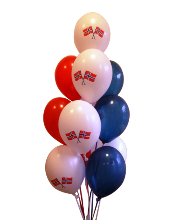 Ballongbukett: 17. mai Rødt, hvit & blått lateksbukett