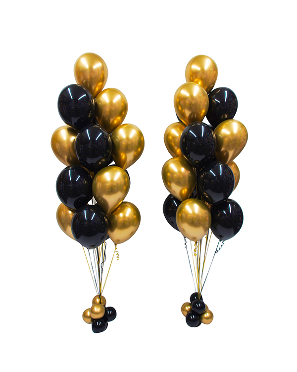 Ballongbukett med glinsende svarte og gullfargede lateksballonger. Vi leverer ballongbuketter på døra, bestill denne flotte buketten til noen på den store dagen. Alle våre lateksballonger er nedbrytbare i naturen på lik linje med et eikeblad. Buketten kommer i størrelsene small, medium, large og XL. Det er large som er avbildet. I small er det 7, i medium er det 12, i den store er det 16 og i den største er det 20. Buketten kommer ferdig oppsatt med vekt, og oppblåst med helium. All vår dekor håndlages for hver gang, og det vil kunne oppstå varisjoner i forhold til det du ser avbildet.