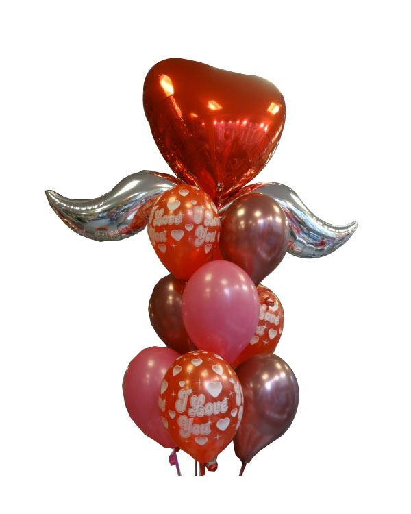 Ballongbukett med folie og lateksballonger. Buketten inneholder rosa og røde lateksballonger med hjerter på og en folieballong formet som et hjerte. Buketten fylles med helium og vi tar på Ultra High Float på lateksballongene så buketten varer ekstra lenge. Perfekt pynt på valentinsdagen eller en annen romantisk anledning. Kommer i størrelsene liten, medium, stor og XL. Det er medium som er avbildet. I den lille er det 6 lateksballonger og 1 folieballong, i medium er det 9 lateksballonger og 1 folieballong, i den store er det 12 lateksballonger og 1 folieballong og i den største er det 15 lateksballonger og 1 folieballong. All vår dekor håndlages for hver gang, og det vil kunne oppstå varisjoner i forhold til det du ser avbildet.