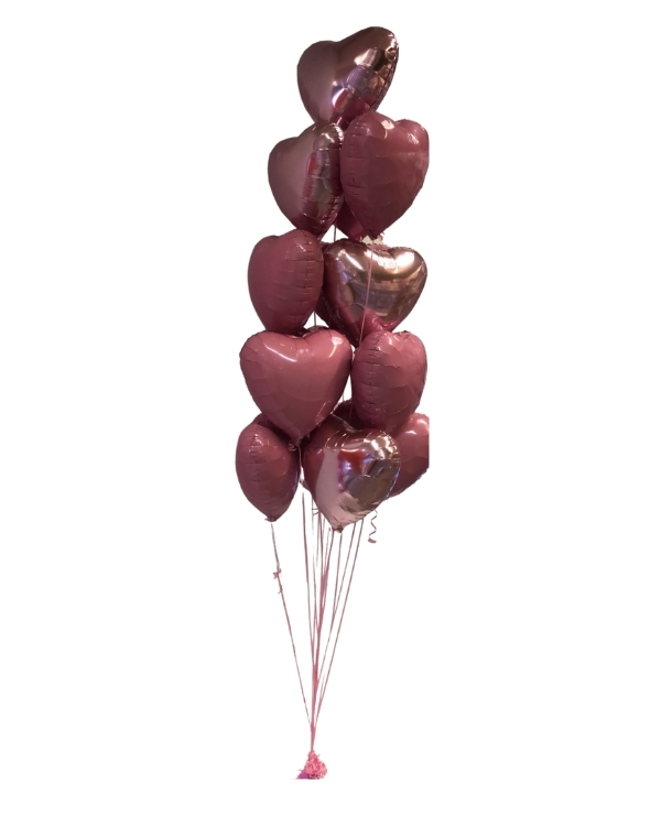 Ballongbukett med hjerteformede folieballonger. Ballongene fylles med helium, og kommer med en ballongvekt. Kjempefin pynt på Valentinsdagen eller en annen romantisk anledning, eller som gave til din utkårede. Kommer i størrelsene liten, medium, stor og XL. Det er den største som er avbildet. I den lille er det 4 folieballonger, 7 i medium, 10 i stor og 13 i den ekstra store. All vår dekor håndlages for hver gang, og det vil kunne oppstå varisjoner i forhold til det du ser avbildet.