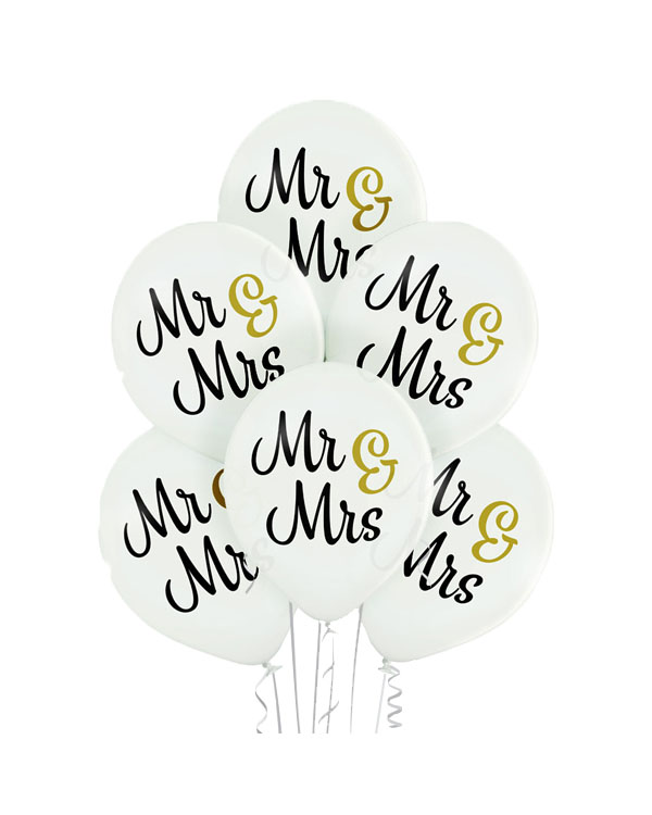 Ballongbukett med lateksballonger. Ballongene er hvite med “Mr & Mrs på. Buketten fylles med helium og vi tar på Ultra High Float så den varer ekstra lenge. Kjempefin pynt eller gave til utdrikninglag eller bryllup. Kommer i størrelsene liten, medium, stor og XL. Det er liten som er avbildet. I den lille er det 7 lateksballonger, 12 i medium, 16 i stor og 20 i den ekstra store. All vår dekor håndlages for hver gang, og det vil kunne oppstå varisjoner i forhold til det du ser avbildet.