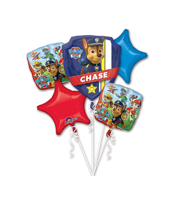 Nydelig folieballongbukett i Paw Patrol-tema med hele 5 flotte ballonger. 1 stor ballong med bilde av Chase, 2 temaballonger og 2 stjerner. Overrask barnet ditt med et skikkelig blikkfang i rommet eller dekorer bursdagsfesten! Kan fylles med helium eller luft. Bruk gjerne en ballongvekt så ikke buketten flyr sin vei. . Buketten kommer uoppblåst, og kan fylles med helium som et tillegg.
