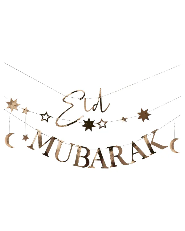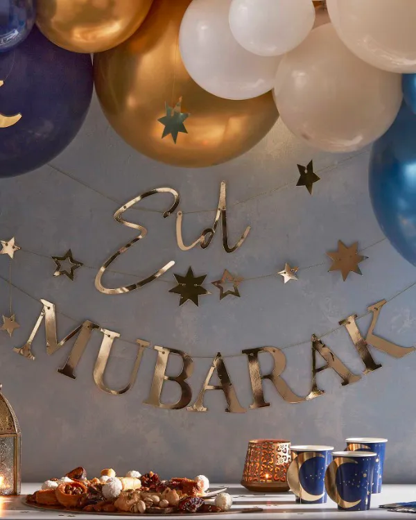 Få den perfekte dekorasjonen til å feire Eid med denne vakre blå «Eid mubarak» måne og stjerner banneren! Med en lengde på 1,5 meter er denne girlanderen ideell for å henge opp på veggen eller over døråpningen. Den er laget av høykvalitets materiale som sikrer langvarig bruk. Denne banneren vil definitivt legge til en festlig touch til ditt Eid-arrangement. Bestill din i dag og gjør Eid-feiringen enda mer minneverdig!