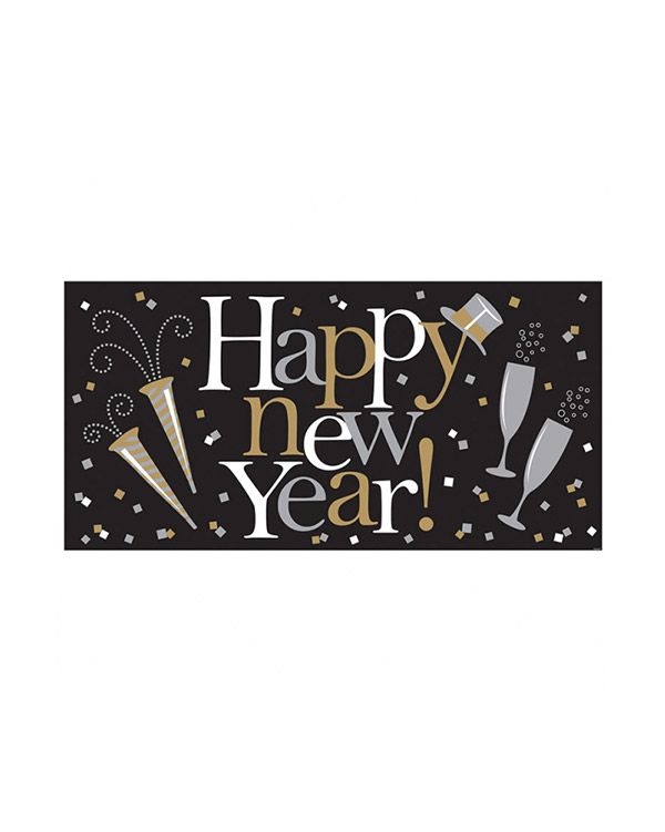 165 x 85 cm svart banner med “Happy New Year” i sølv og gull. Ring inn det nye året med dette flott banneret.