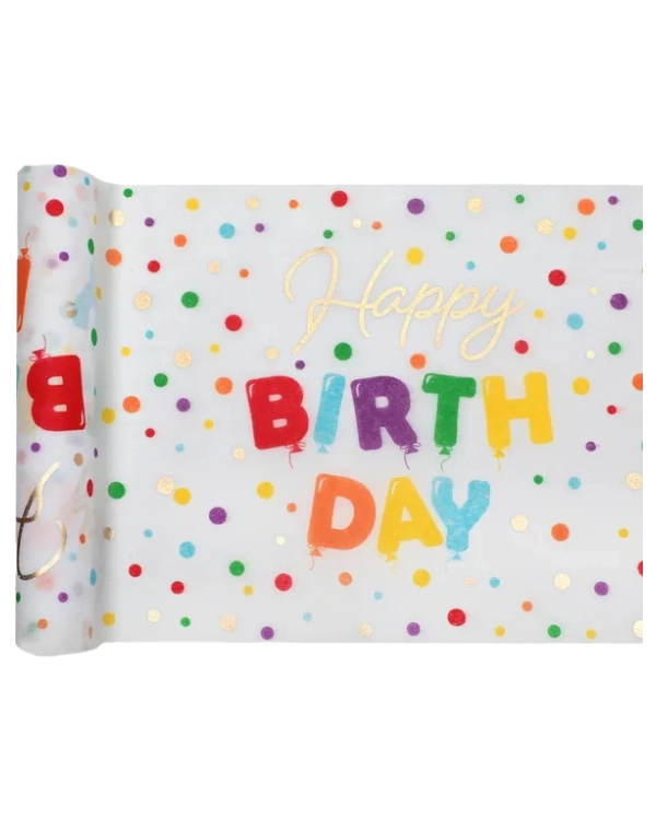 Denne fargerike bordløperen er perfekt for å feire en bursdag! Med en lengde på 3 meter og bredde på 28 cm, vil den dekke bordet ditt på en elegant måte. Denne bordløperen er laget av høykvalitets materiale som er slitesterkt og enkelt å rengjøre. Med sitt glade “Happy Birthday” design vil den skape en festlig atmosfære og legge til en ekstra touch til bursdagsfeiringen din. Bestill denne fargerike bordløperen i dag og gjør bursdagen din enda mer spesiell!