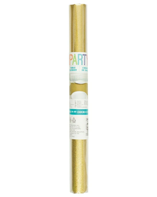 Denne bordløperen i gull glitter vil gi et elegant og glamorøst preg til ethvert bord. Med en størrelse på 32x270cm passer den perfekt til lange bord og vil være et flott tillegg til enhver fest eller spesiell anledning. Laget av høykvalitetsmaterialer, vil denne bordløperen være slitesterk og enkel å rengjøre. Legg til litt glans og glimmer til ditt neste arrangement med denne vakre bordløperen i gull glitter.