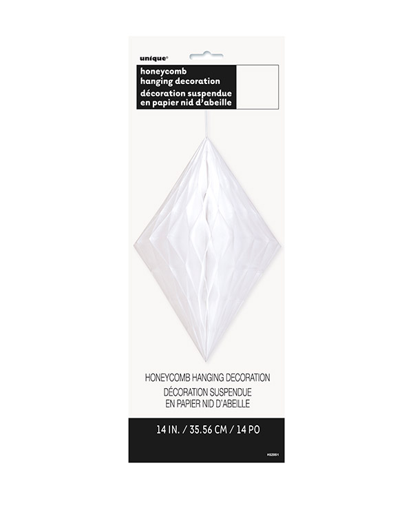 Honeycomb på 36 cm formet som en diamant. Kommer i hvit, rosa og marineblå. Fin pynt på babyshower, fest eller bursdag.