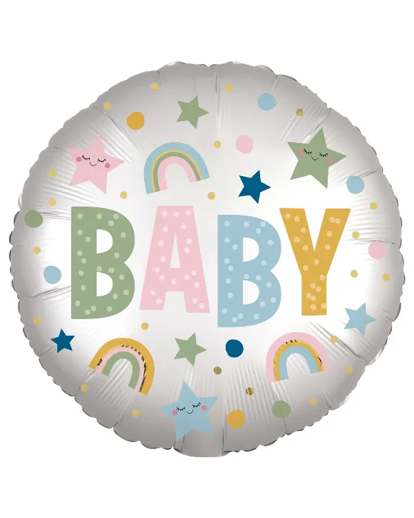 Folieballong: “Baby” med regnbuer og stjerner – Fargerik – 43cm