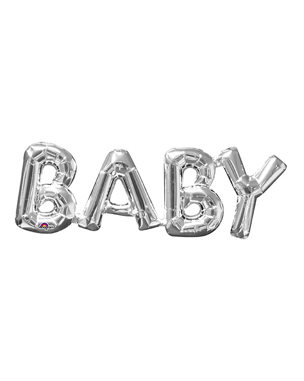 Ballongbanner «Baby» i sølv på 60 x 22 cm. Perfekt som pynt i babyshower. Fylles kun med luft. Kjøp med dobbeltsidig ballongteip og fest den direkte på veggen.