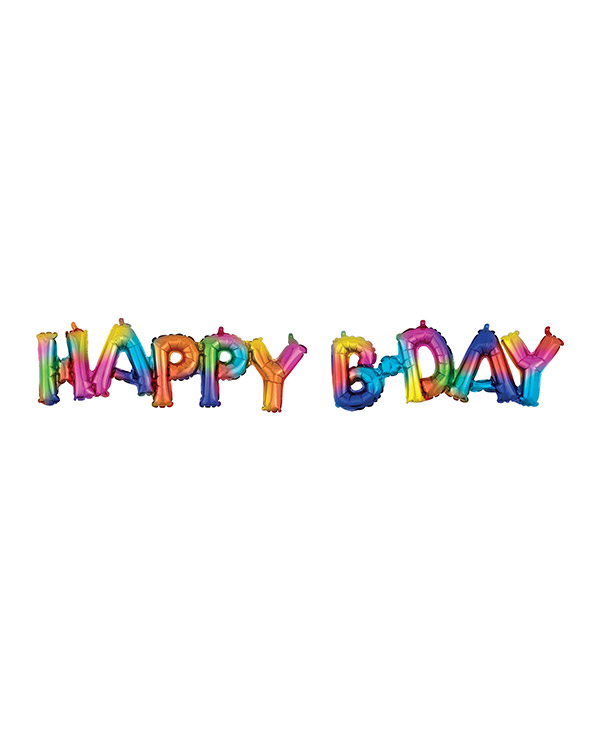 Ballongbanner “Happy B-day” i regnbuefarge på 142 x 25 cm. Fylles kun med luft. Perfekt pynt til bursdagsfesten. Kjøp med dobbeltsidig ballongteip og fest den direkte på veggen.