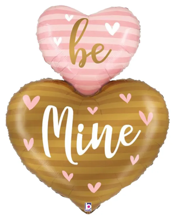 Folieballong: «Be mine» hjerter – gull og rosa – 81cm
