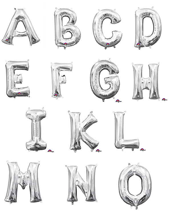 1 stk folie/bokstavballong i sølv på 33 cm. Vi har alle bokstaver bortsett fra Æ, Ø, Å. Sett sammen bokstaver for å skrive jubliantens navn, eller noe annet morsomt. Bruk dobbeltsidig ballongteip eller en krok og fest de på veggen.