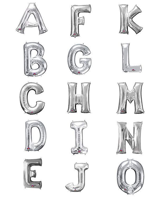 1 stk folie/bokstavballong i sølv på 86cm. Vi har alle bokstaver bortsett fra Æ, Ø, Å. Sett sammen bokstaver for å skrive jubliantens navn, eller noe annet morsomt. Kan fylles med luft eller helium. Fest de til en ballongvekt så de ikke flyr sin vei, eller Bruk dobbeltsidig ballongteip eller en krok og fest de på veggen.