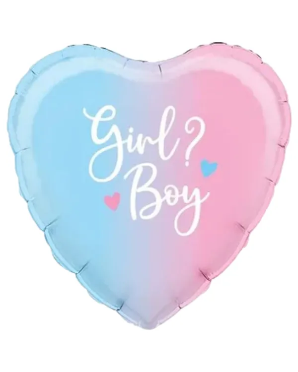 Folieballong: “Girl? Boy?” Gender reveal hjerte – 45cm