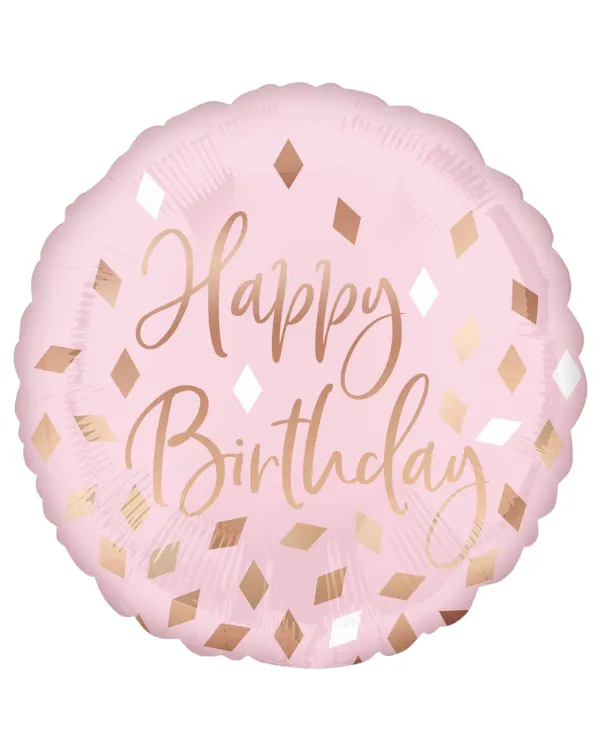 Folieballong: “Happy Birthday” med diamantformer – Rosegull – 45cm