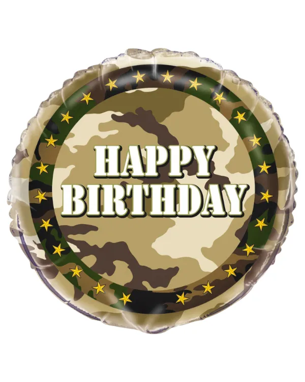 Folieballong: “Happy Birthday” – Militærmotiv – 45cm