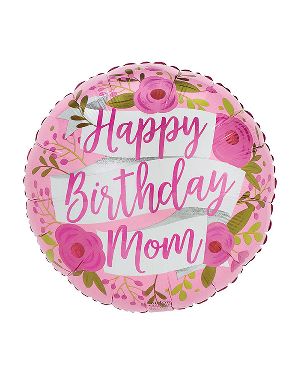 Folieballong: “Happy Birthday Mom” – Roser & blomster – 43cm