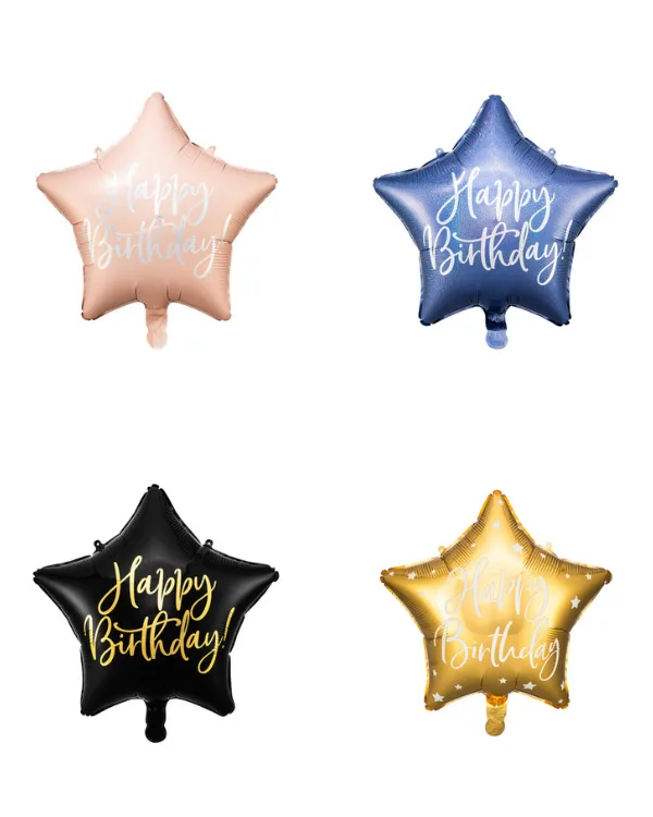 Folieballong: ”Happy Birthday” – Stjerne – Flere farger – 40cm