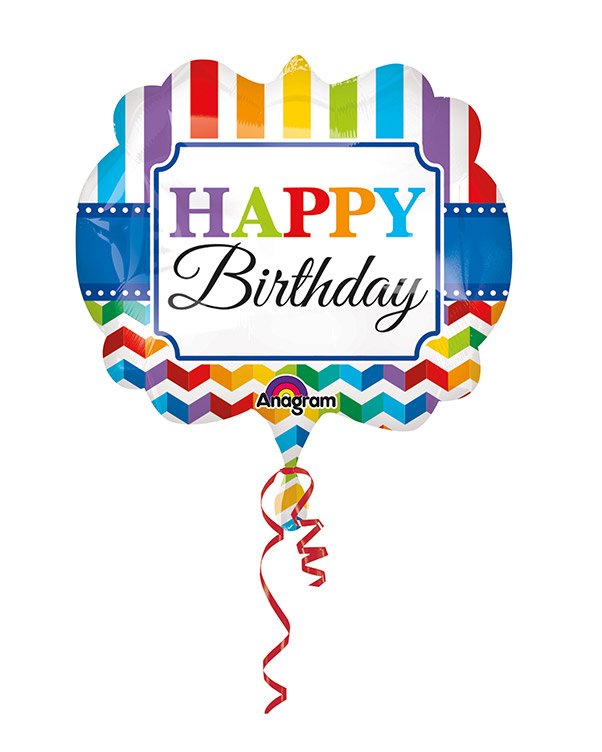 Folieballong: “Happy Birthday” – Striper – 63 x 55cm