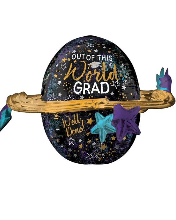 Denne folieballong med teksten “Out Of This World Grad” og stjerner, måler 74 cm og er perfekt for å feire den spesielle dagen! Ballongen er rund, Svart med stjerner, og har teksten “well done” i gull, noe som gjør den til en strålende gave til den nyutdannede. Fyll ballongen med enten luft eller helium for å skape en imponerende visuell effekt. Husk å bruke en ballongvekt slik at den ikke flyr sin vei. Feir fullført utdanning med stil med denne fantastiske ballongen!