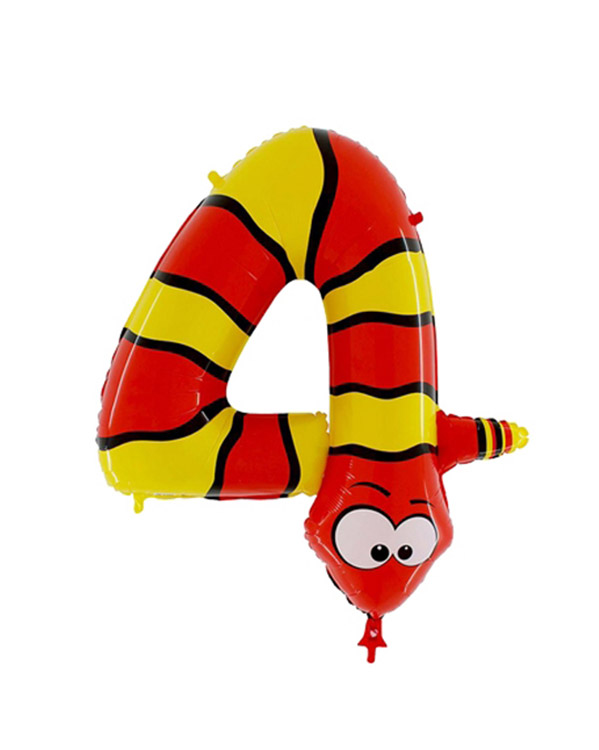1. Stk folieballong med en morsom slangefigur formet med tallet “4”. Ballongen kan bli opptil 101,6cm stor når den blåses opp. Passer perfekt til bursdager og temafester for yngre barn. Kan fylles med luft eller helium. Bruk gjerne en ballongvekt så den ikke flyr sin vei.
