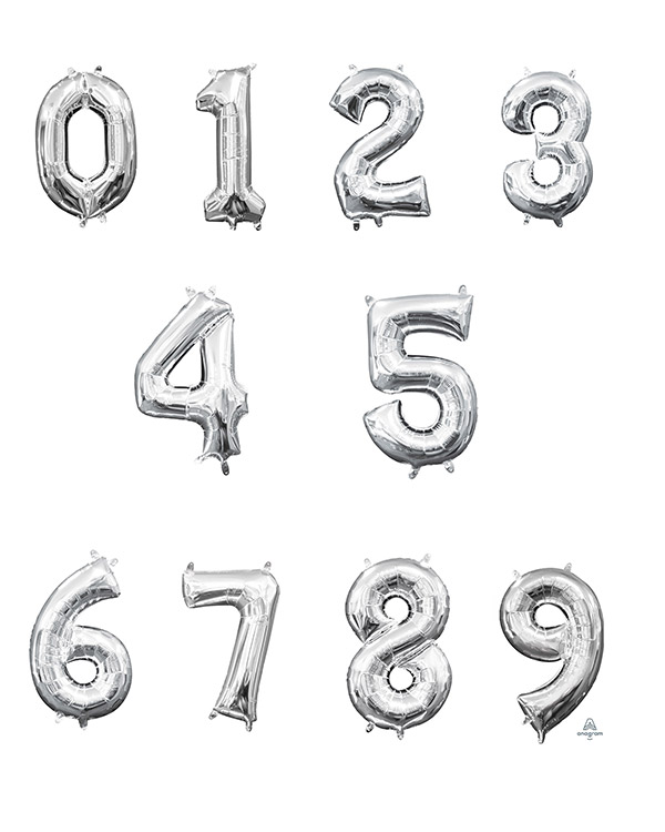 1 stk folie/tallballong i sølv på 15x33cm. Vi har 1, 2, 3, 4, 5, 6, 7, 8 og 9. Kombiner de for å få tallet som passer for din jubilant. Kan bare fylles med luft. Fest de til en ballongpinne, eller Bruk dobbeltsidig ballongteip eller en krok og fest de på veggen.