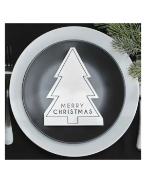 «Merry Christmas» – Formet som et tre – Svart & Hvit – 17x12cm