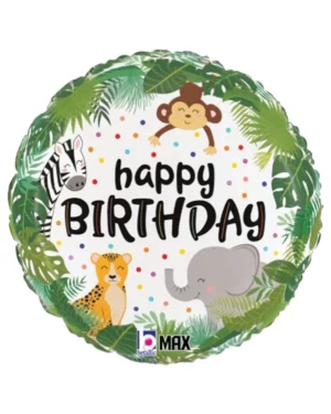 «Happy birthday» med dyr og blader – Fargerik – 45 cm