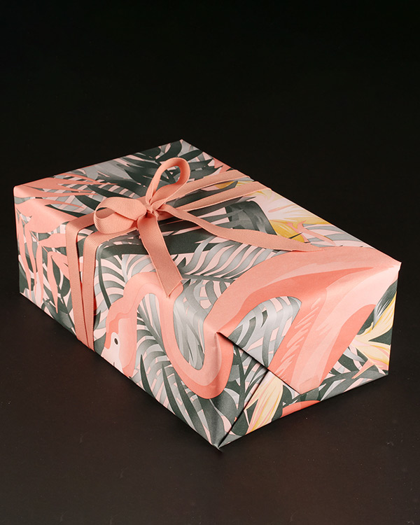 Flott gavepapir i høy kvalitet på 55cm x 2 meter. Det er flamingoer og blader på papiret. Vi har mange fine bånd som passer perfekt til papiret. Gi en ekstra pen innpakket gave til noen du er glad i.