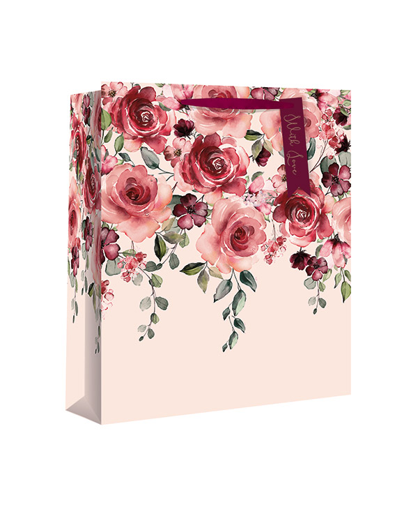 Nydelig rosa gavepose med roser på. Gaveposen kommer med et lite kort, så her er det bare å putte gaven rett oppi og den er klar. Enklere og bedre blir det ikke! Gaveposen er på 25 x 21cm