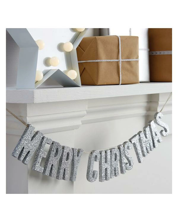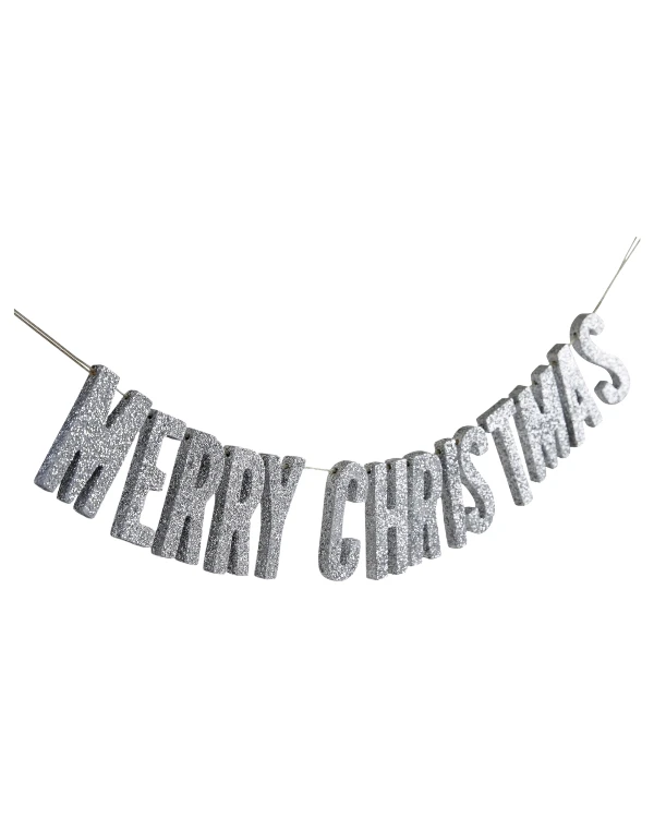 Girlander / Banner: “Merry Christmas” – Glitter – Sølv – 70cm