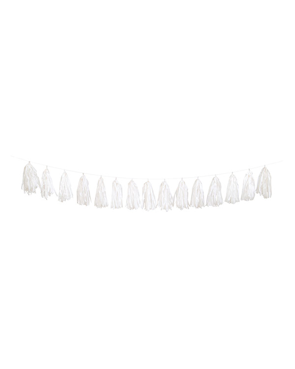 Girlander/dusker på 2,7 meter. Kommer i en som er en blanding av gull, sort og hvit, en som bare er hvit, en som bare er rubinrød, en som er en blanding av sølv, sort og hvit og en som er helt svart. Kan henges i døråpningen eller på veggen. Perfekt pynt på festen!