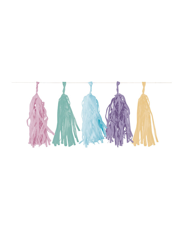 1 stk 3 meter lang girlander med dusker i ulike farger. Perfekt dekorasjon på bursdagsfest for å lyse opp rommet.