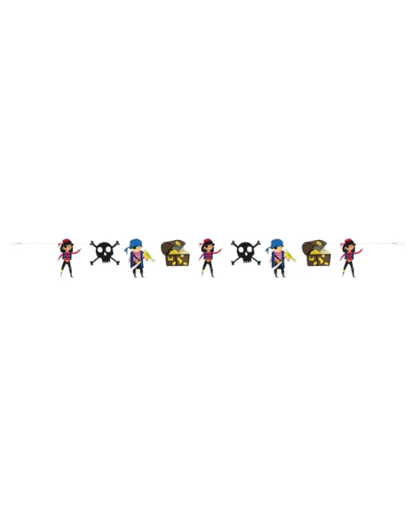 Denne flotte pirat-girlanderen er perfekt for å skape en festlig atmosfære på pirattema-arrangementer. Med en lengde på 350 cm kan den enkelt henges opp og dekorere hele rommet. Girlanderen har flotte piratmotiver og tassels som gir den ekstra stil og sjarm. Laget av høykvalitetsmaterialer, er denne girlanderen holdbar og kan brukes om og om igjen. Gjør piratfesten din komplett med denne fantastiske girlanderen!