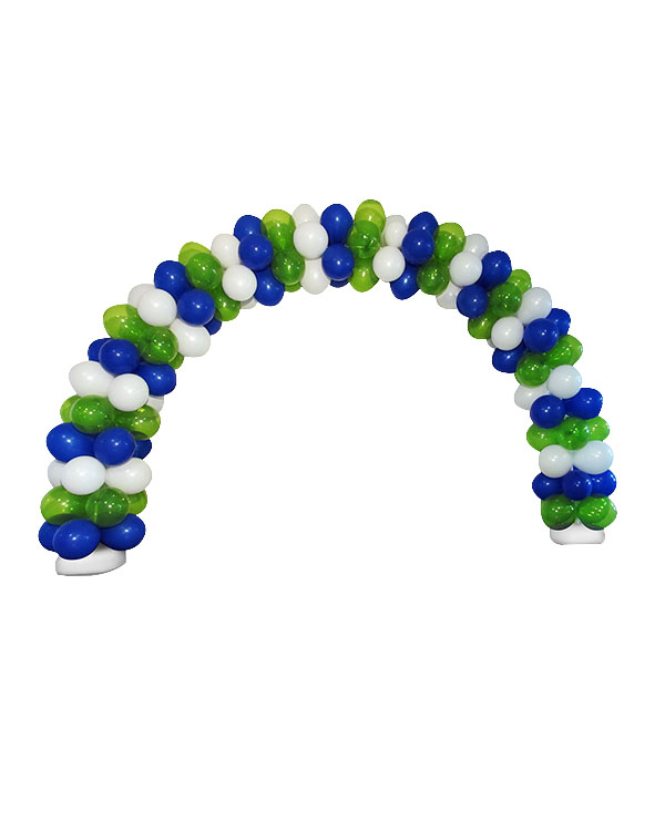 Girlanderbuer lagd av ballonger i blå, hvit og grønn. Buene kommer som standard i 6, 7, 8, 9 og 10 meter, men kan selvfølgelig lages etter målene du ønsker. Det er 8 meter som er avbildet her. Perfekt dekorasjon utenfor en fest, en grand opening eller noe lignende hvor du trenger litt ekstra pynt. Vi bruker High Float på all vår dekor så de skal vare så lenge som mulig. Vi kan også lage andre girlanderbuer på forespørsel. All vår dekor håndlages for hver gang, og det vil kunne oppstå varisjoner i forhold til det du ser avbildet.