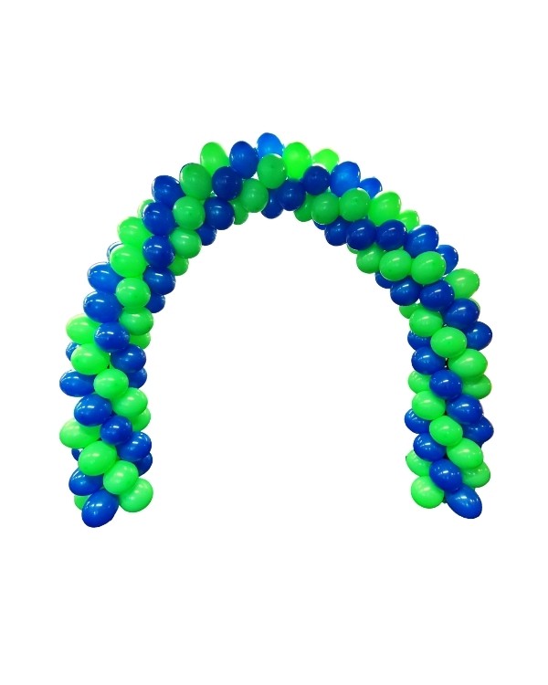 Girlanderbue lagd av grønne og blå ballonger. Buene kommer som standard i 6, 7, 8, 9 og 10 meter, men kan selvfølgelig lages etter målene du ønsker. Det er 8 meter som er avbildet her. Perfekt dekorasjon utenfor en fest, en grand opening eller noe lignende hvor du trenger litt ekstra pynt. Vi bruker High Float på all vår dekor så de skal vare så lenge som mulig. Vi kan også lage andre girlanderbuer på forespørsel. All vår dekor håndlages for hver gang, og det vil kunne oppstå varisjoner i forhold til det du ser avbildet.